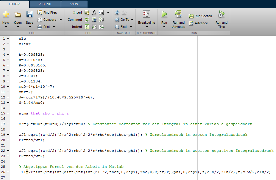 VF=(J*mu0*(mu0*M))/4*pi*mu0; % Konstanter Vorfaktor vor dem Integral in einer Variable gespeichert