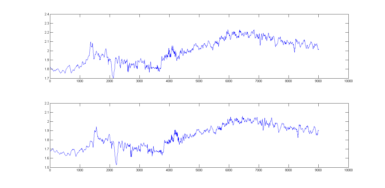 Deine Frage kann ich dir nicht beantworten, aber hast du mal versucht den Offset der Signale herauszurechnen? Also Mittelwert des kompletten Signals berechnen (= Offset) und diesen von jedem Wert abziehen.