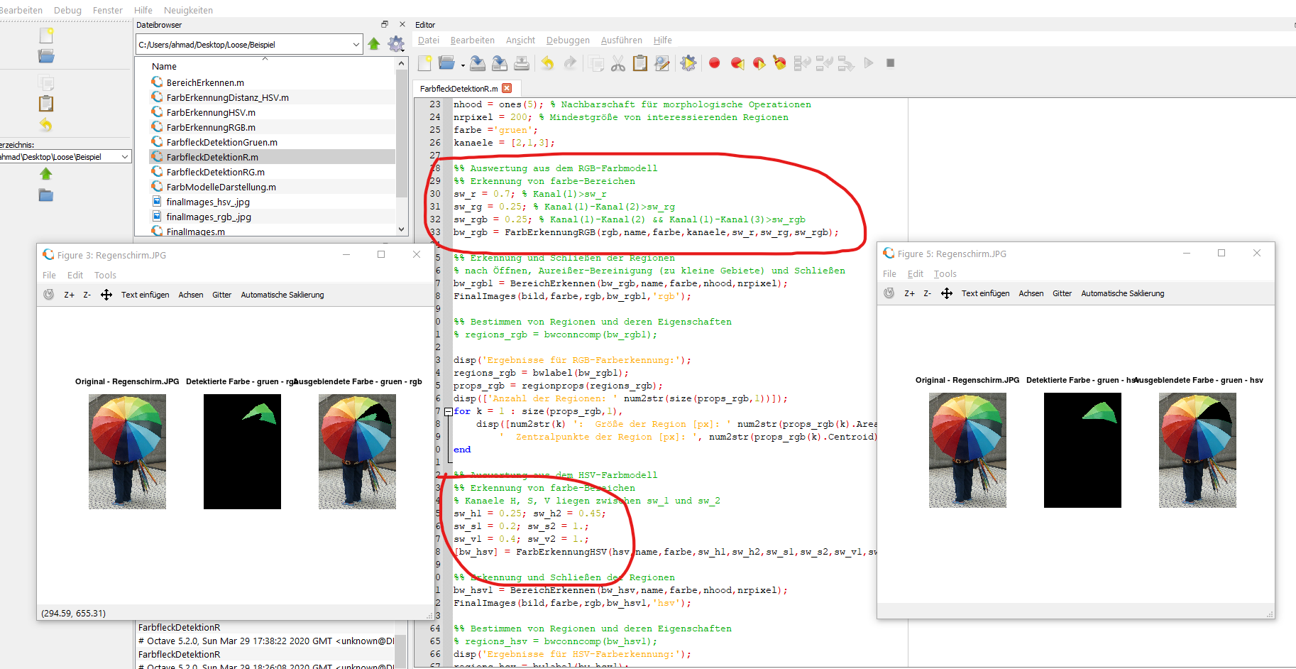 Es wurde uns ein Programm mit Matlab gegeben, das eine bestimmte Farbbereiche erkannt und abschneidet.