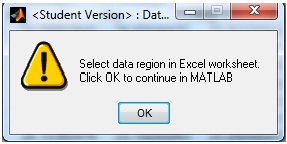 bei Verwendung des xlsread(...,-1) Befehls lässt sich ja bekanntlich ein beliebiger Bereich aus einer Exceldatei auswählen. Dabei öffnet sich ein Popup Fenster, welches man nach fertiger Auswahl mit OK bestätigen muss.