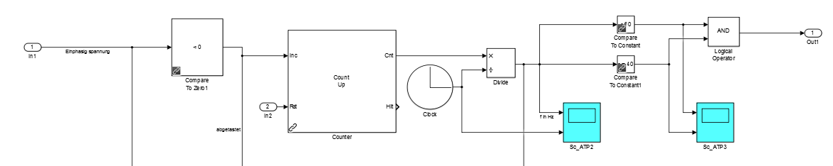 Über eine Periode ermitteln ist völlig okay! Das hätte ich auch schon umgesetzt, aber da liegt ja mein Problem. Wie ermittle ich denn die Zeit einer Periode? Ich kenne ja nur die Modellzeit, die ja immer weiterläuft. Ich könnte mir natürlich beim Nulldurchgang die aktuelle Zeit speichern und beim nächsten Nulldurchgang die gespeicherte Zeit von der aktuellen Modellzeit abziehen, aber wie realisiert man sowas in Simulink?