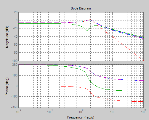 Was bedeutet denn in der Amplitude (grüne Kurve) bei ca. 1 rad/s die "wölbung"?