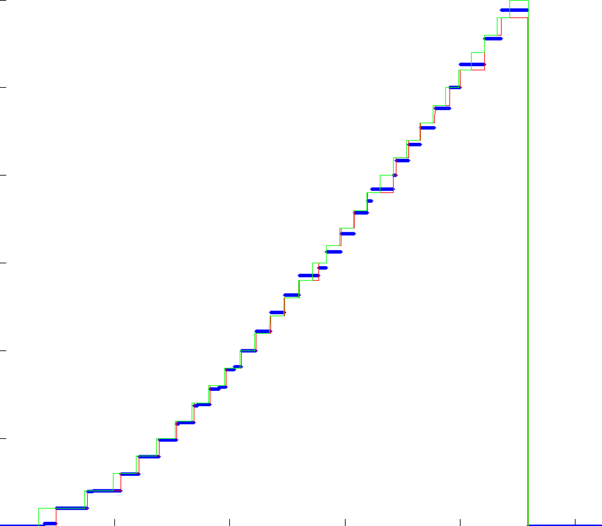 Der rote Graph mein Ergebnis momentan und die blauen Datenpunkte meine errechneten Frequenzen, also die Grundlage für den roten Plot.