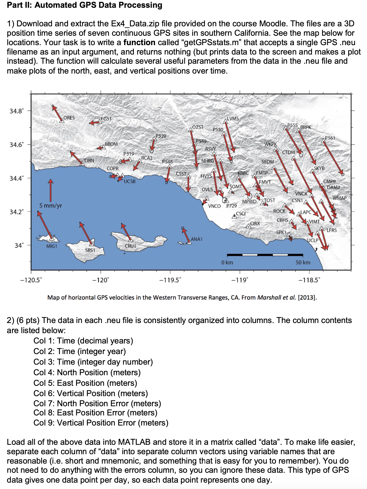 Wir haben diverse .neu Datein. diese können supi von Matlab R2020a gelesen werden und bestehen aus 9 Spalten a ca. 3000 Zeilen. Sie sollen Messwerte von GPS Geschwindigkeiten in Californien angeben. Jetzt soll man eine Funktion erstellen, die lediglich durch das einsetzen der .neu Datei einen Plot erstellt. Ich stehe total auf dem Schlauch. Ich weiß nicht woran es liegt. ob an der schieren Menge der Daten, die mich verunsichert, oder dass ich etwas nicht richtig verstanden habe... ich weiß es nicht.