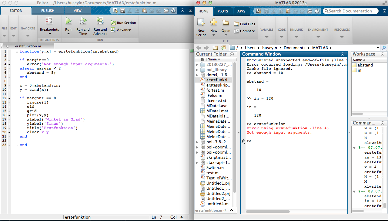 Ich lass es laufen und beim ersten nargin gib es einen Fehler aus