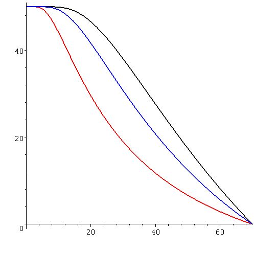 Diese möchte ich nun gerne plotten. 'Vf' steht dabei für die freie Geschwindigkeit (bspw. 50 km/h), 'Vm' ist die gesuchte mittlere Geschwindigkeit, 'a' ist ein straßenspezifischer Parameter (Wert > 0) und 'D' stellt die Verkehrsdichte dar (sollte so zwischen 50 und 80 liegen). Es soll der Zusammenhang zwischen Geschwindigkeit und Dichte dargestellt werden (also y=Vm und x=D, wenn mich nicht alles täuscht).
