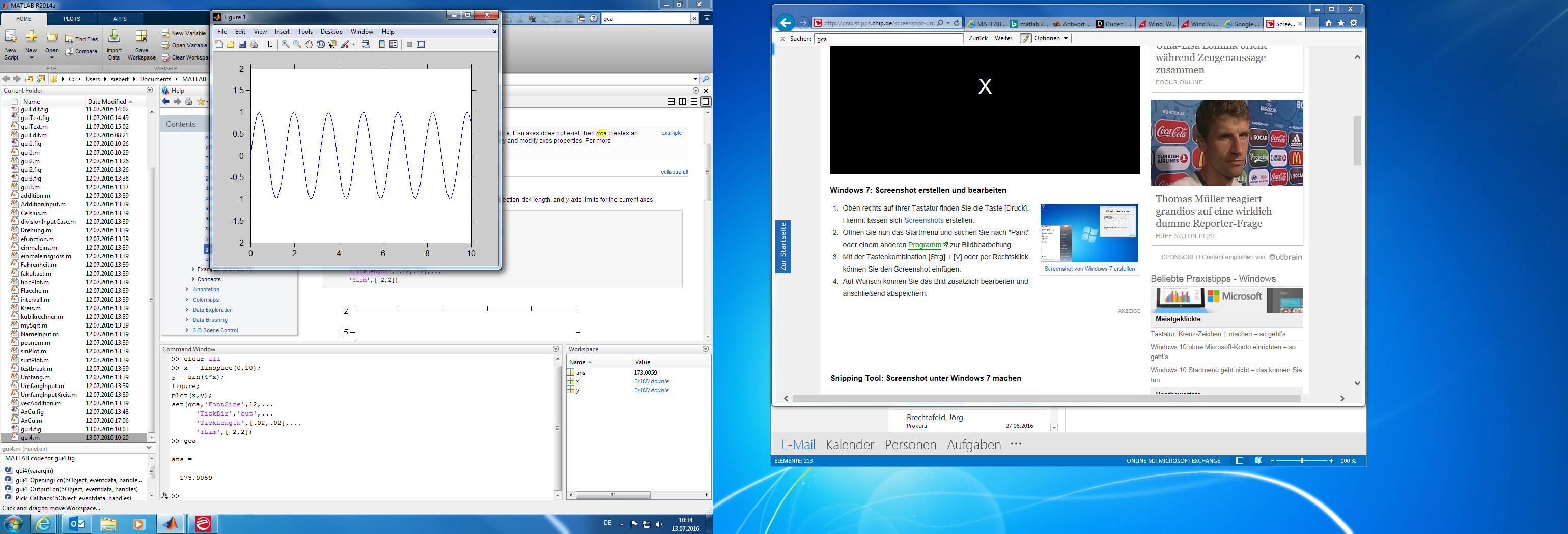 also wenn ich gca ins CW schreibe erstellt er mir eine Figure (is ja klar - gibt ja auch noch nix) und zeigt mir dessen handles an! Nochmal die Frage - welche Matlab-Version hast du?