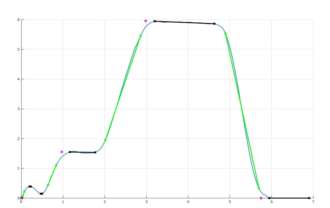 Wenn ich die Schnittpunkte von Hand einzeln bestimmt bekomme ich nur den Schnittpunkt Grün und Schwarz (pinker Punkt) aber nicht den zwischen Schwarz und Grün..