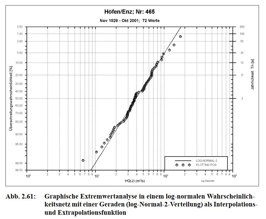 Graph. Extremwertanlayse in log-nor. Wahrscheinlichkeitsnetz |