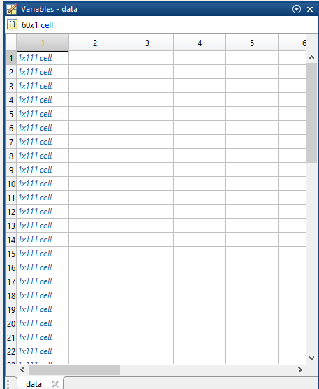 Ich habe eine data matrix (60x1 cell matrix), die wiederum mit 1x111 cell matritzen gefuellt ist. In diesen befinden sich jeweils nx1 double matritzen von unterschiedlicher laenge, wobei sie alle nur eine Spalte haben. Ziel ist es, fuer alle 60 Spalten jeweils die darin enthaltenen Cell Matritzen in einer grossen double Matrix zusammenzufassen (wie eine Zeitserie). Das wuerde eine nx 111 Double Matrix ergeben am Ende.