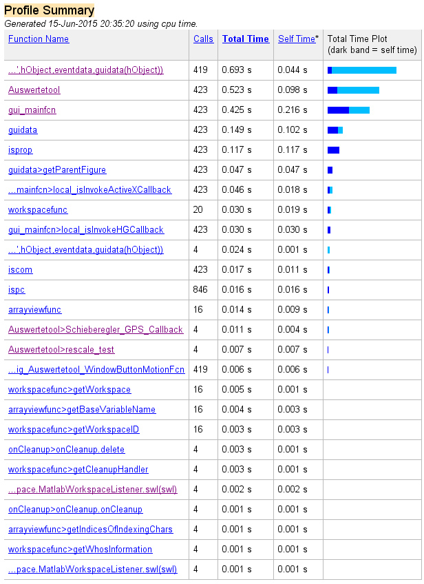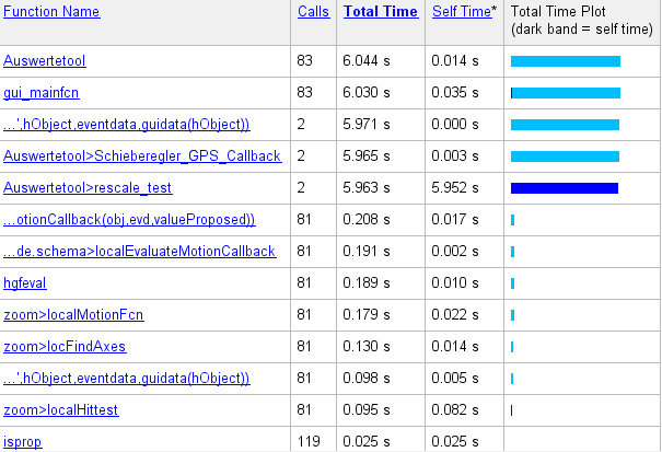 bzw. folgendes war auch noch sehr langsam. Hatte das jetzt erstmal testweise entfernt: "allAxesInFigure = findall(gcf,'type','axes')"