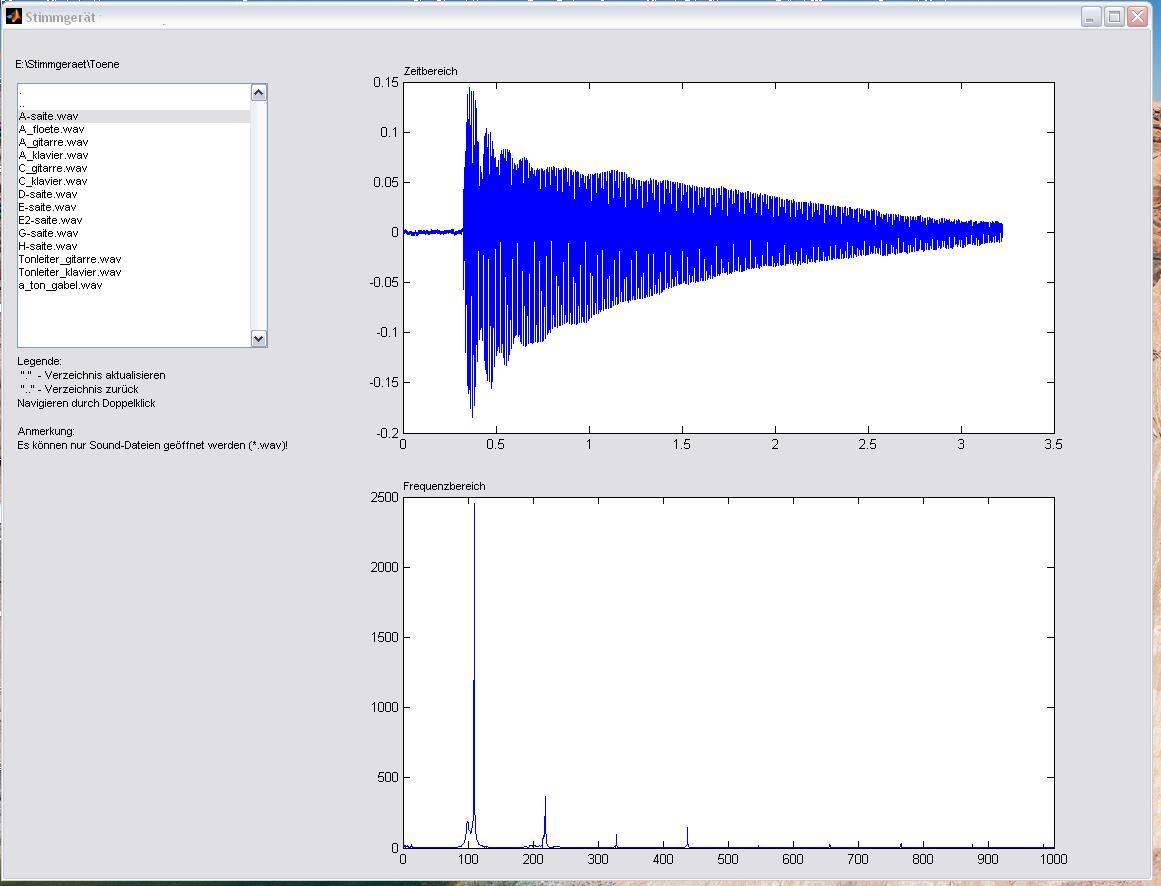 Aus diesem Spektrum soll dann der Ton / die Töne herausgelesen werden, um eine Art Stimmgerät für Instrumente zu realisieren.