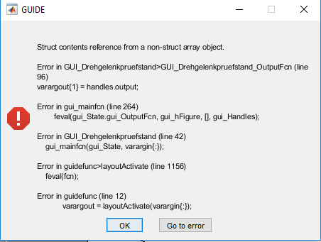 Das hat mit der GUI eigentlich nix zu tun. Das liegt daran, dass beim Schließen eine Variable aufgerufen wird, die noch nicht initialisiert worden ist: varargout{1} = handles.output