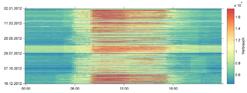 die Daten die vorhanden sind, sind 35040 Datenpunkte. Die teilen sich in 365 Tage und jeweils 96 Datenpuntek je Tag. Diese Aufteilung möchte ich gern auf einer Heatmap haben. Ähnlich wie im angehangenen Bild.
