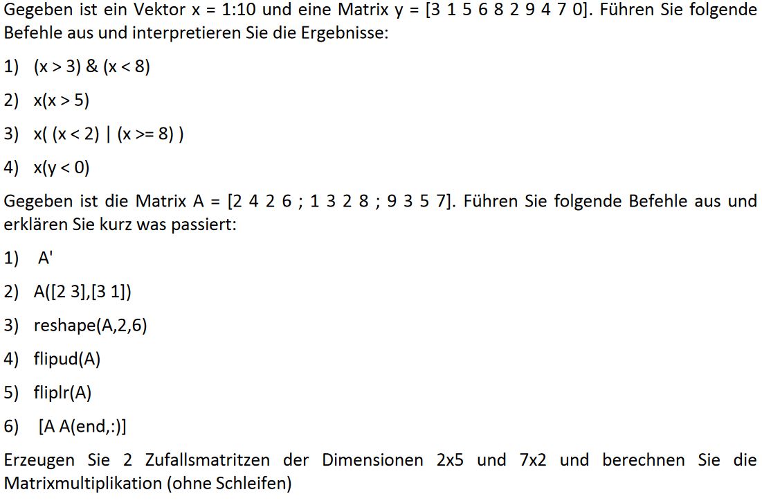Hilfe bei MatLab-Uebung Vektoren und Matrizen |