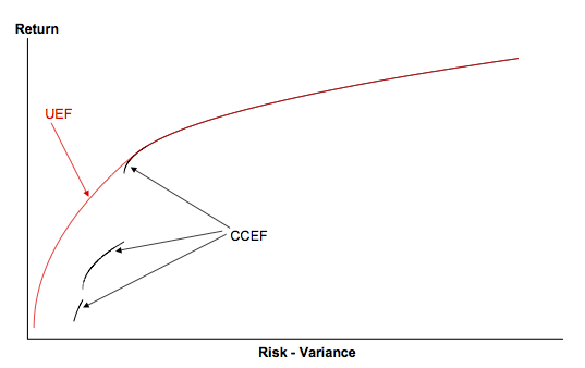 das ist natürlich schade, dass du die Funktion nicht hast. Da ich das Problem aber auch heuristisch lösen will, habe ich in Matlab den GA verwendet. Die Lösung des unbeschränkten Problems ist eine monoton wachsende Kurve mit der Varianz bzw. Standardabweichung auf der Abszisse und der Portfoliorendite auf der Ordinate (rho). Das kann man sich noch mal in dem Bild anschauen (UEF). Der GA sollte jetzt was "Ähnliches" wie die CCEF erzeugen, es kommt aktuell aber noch nichts sinnvolles raus.