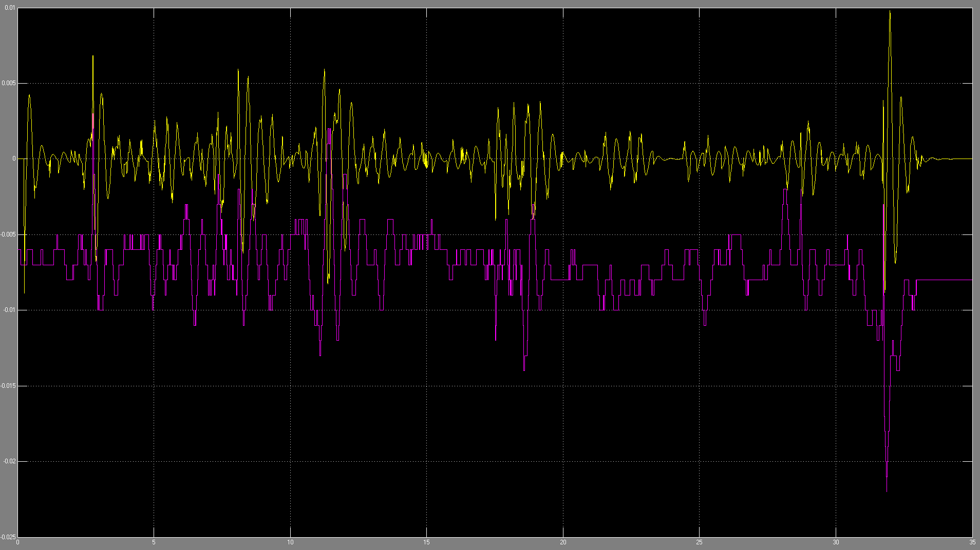 Als Beispiel ist im Anhang ein Scope, in welchem das erzeugte Signal des Modells und das gemessene Signal übereinander liegen.