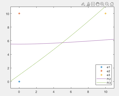 plot(e1(1),e1(2),'Marker','*','LineStyle','none') xlim([-1,11]);