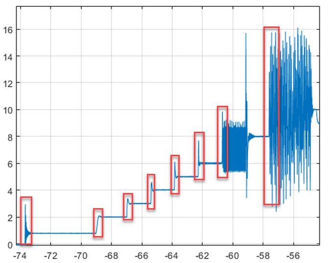 Und das für jeden Sprung eine Datei. Jetzt habe ich hier aber kein "ideales" Signal. D.h. ich habe hier Einschwingvorgänge und Rauschen vorhanden. Diese würde ich gerne pro Sprung Ignorieren... .