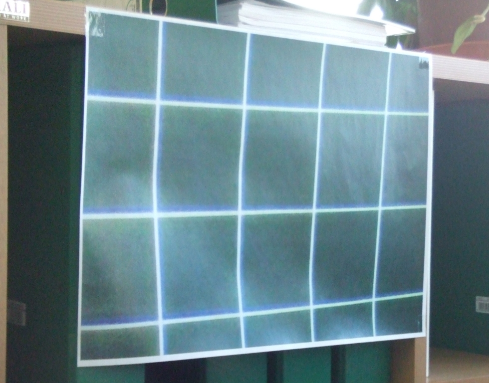 Ich versuche mal mein Problem etwas genauer zu schildern. Das Bild zeigt ein Foto von einer Leinwand auf der ein Linienmuster zu sehen ist. Problem ist, dass das Foto unter einem Winkel von 40°...45° aufgenommen wurde. Das Linienmuster ist also ein Trapez. Ich möchte jetzt die Umgebung, die zusätzlich zu dem Linienmuster auf dem Bild zu sehen ist abschneiden.