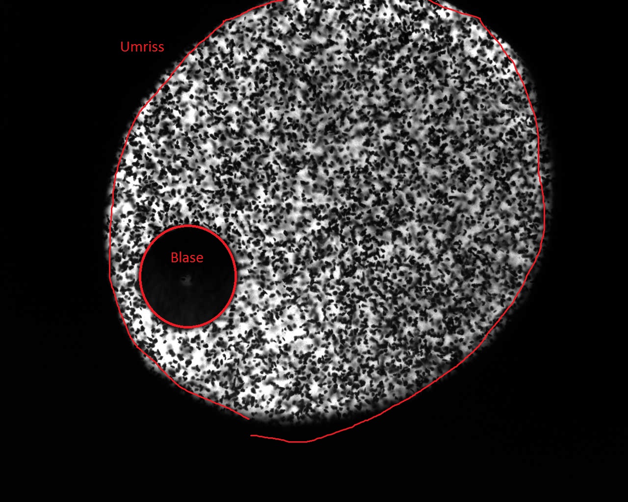 Welches ist dies "Blase, die durch einen schwarzen Kreis begrenzt ist"? Ich erkenne nicht auf Anhieb, wlechen Kreis Du meinst.
