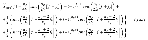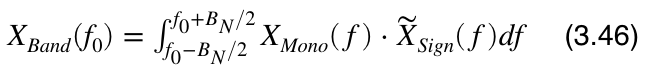 Mit 3.46 lässt sich die monofrequente Funktion X_Mono durch Multiplikation und Integration mit 3.44 in eine bandbreitenabhängige Funktion überführen.