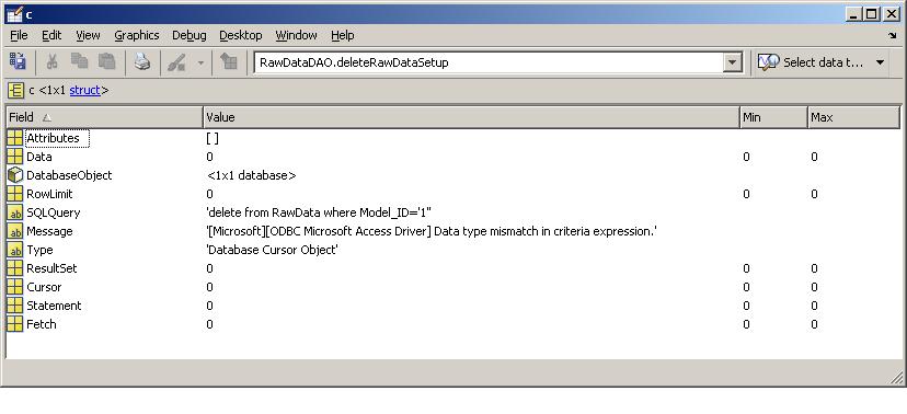 Ich erhalte diese Fehlermeldung: ??? Error using ==> RawDataDAO.RawDataDAO>RawDataDAO.deleteRawDataSetup at 103
