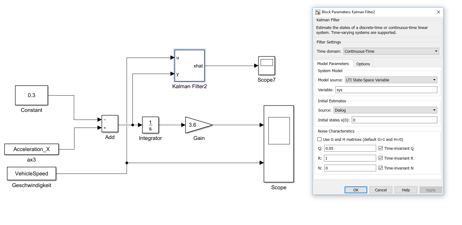 Jetzt wollte ich mir mal den Kalman-Filter zur Hilfe nehmen, ich wollte ihn nicht gleich komplett verstehen sondern nur in Simulink nutzen.