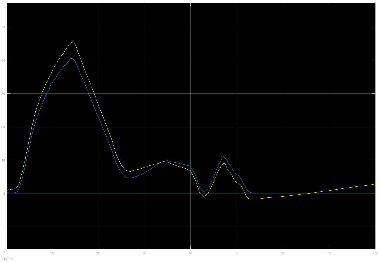 Beschleunigung integriert gelb tatsächliche Geschwindigkeit blau |
