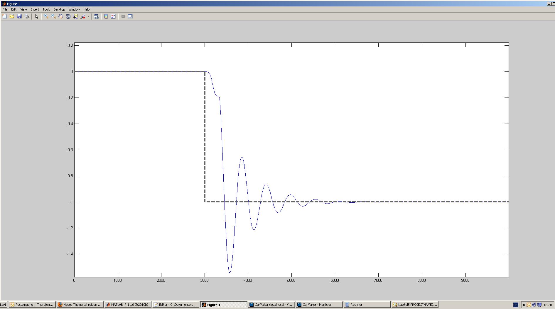 ich habe folgendes Problem. Ich habe eine Beschleunigungsregler (hier negativ), für den ich eine Sprungantwort ermittelt habe, siehe Anhang. Das Übertragungsverhalten müsste einem PT2 Glied entsprechen und damit die Gleichung: