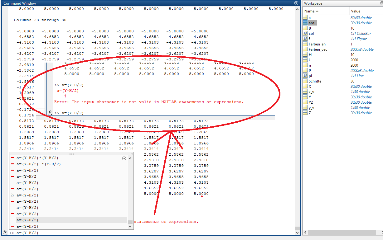 ich habe einen für mich völlig unverständlichen Fehler in Matlab bekommen (Siehe Bild)