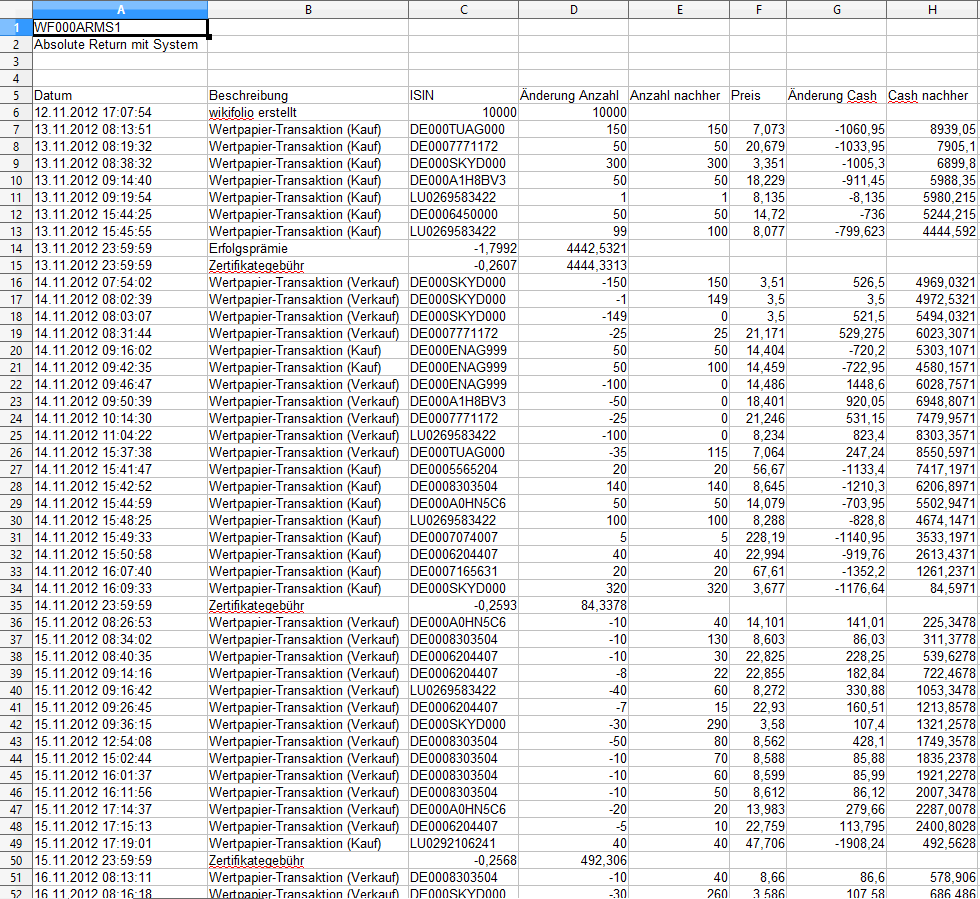 13 . 11 . 201208 : 19 : 32 ; W e r t p a p i e r - T r a n s a k t i o n ( K a u f ) ; D E 0007771172 ; 50 , 000000000000 ; 50 , 000000000000 ; 20 , 6790 ; - 1 . 033 , 9500 ; 7 . 905 , 1000