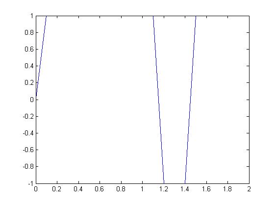 und ja die linien müssen schräg sein. du machst ja einen kontinuirlichen plot von nem unkontinuirlichen signal. die punkte werden einfach nur miteinander verbunden. und der sprung von 0 auf 1 ist halt schräg da zwischen 0 und 1 ja 100ms vergehen. du solltest die nochmal das grundlagen tutorial von matlab angucken. da steht drin was (:,1) und so weiter bedeutet.[/code]