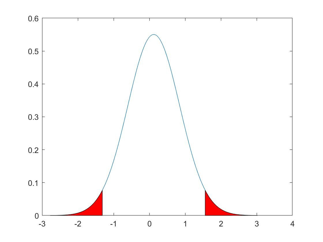 Wie bekomme ich es jetzt hin die Grenzen und den roten Bereich des zweiten Plots in das Histogramm des ersten Plots so einzuzeichnen, dass dies meine berechneten Werte sind? Höchstwahrscheinlich benötige ich den Befehl "normpdf" für meine Darstellung nicht, da ich ja alle vorhanden Werte im Vorfeld berechne.