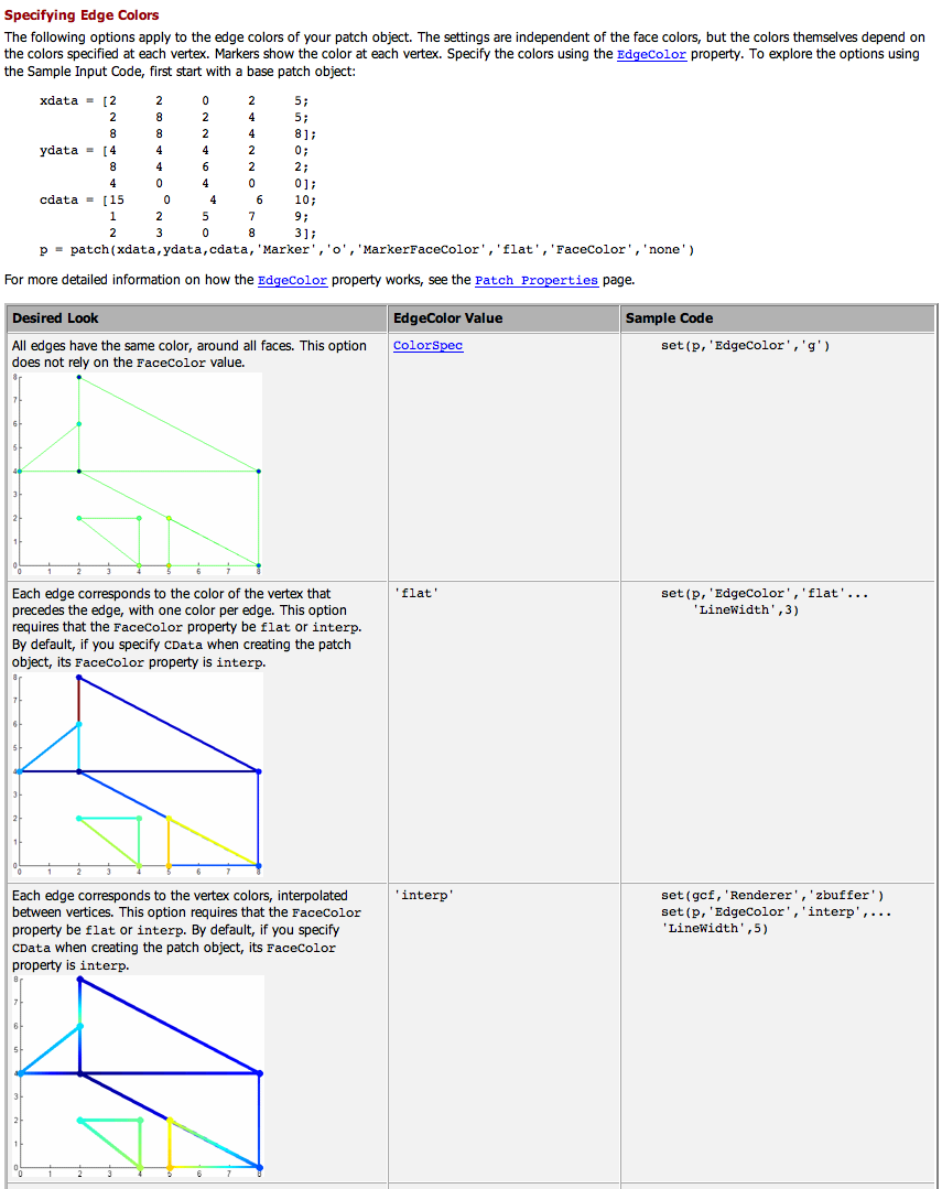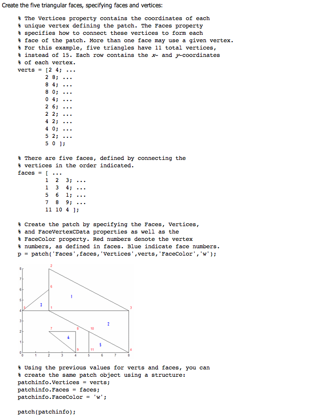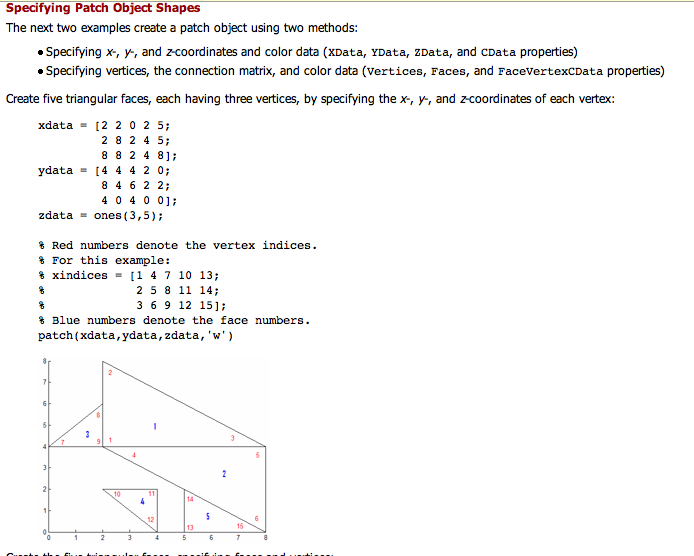 In der Matlab-Hilfe unter "Introduction to Patch Objects" habe ich im ersten Abschnitt folgende Aussage gefunden: