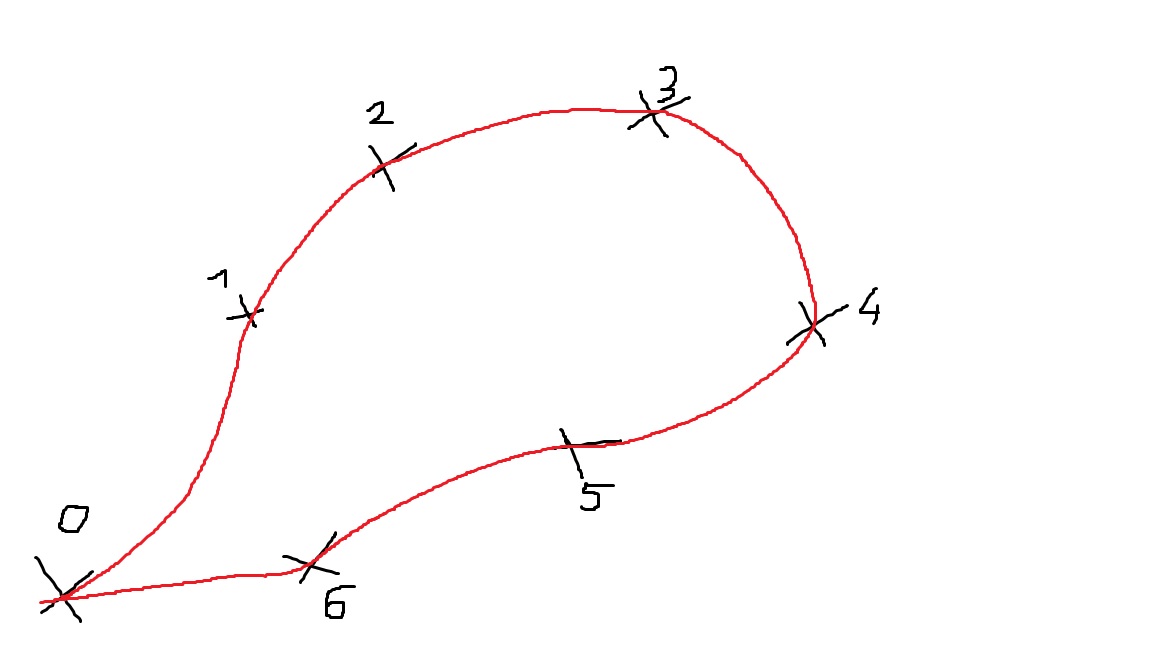 ich möchte für einen Autopiloten eine GPS Route durch einzelne Wegpunkte vorgeben und diese dann durch eine Kurve verbinden. Leider konnte ich keine Funktion finden die so etwas kann, da ja keine Funktion zu Grunde liegt bzw keine Abhängigkeit zw x und y Koordinate. Im Anhang ist ein Bild zur Verdeutlichung.