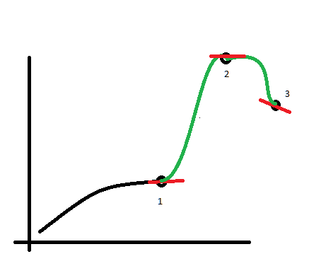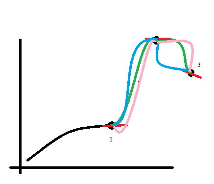 Die Steigungen von den Punkten sind auch bekannt und sollen auch eingehalten werden. Nun möchte ich eine Funktion durch die drei Punkte (inkl. Steigungen) durch legen, um noch weitere Werte zu interpolieren in Abhängigkeit von Parametern der Kurve. Hätte jemand da eine idee?