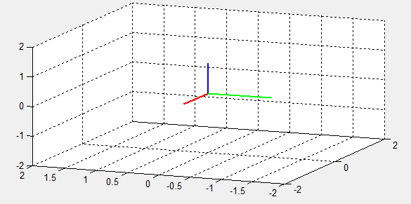ich habe das Problem jetzt schon selbst lösen können. Ich habe einfach 3 Vektoren angelegt ([1;0;0], [0;1;0], [0;0;1] für x-, y- und z-Richtung). Mithilfe von Rotationsmatritzen werden dann die neuen Koordinaten aller drei verdrehten Vektoren berechnet. Geplottet wird das dann einfach mit 3 Geraden, die vom Ursprung aus gehen.