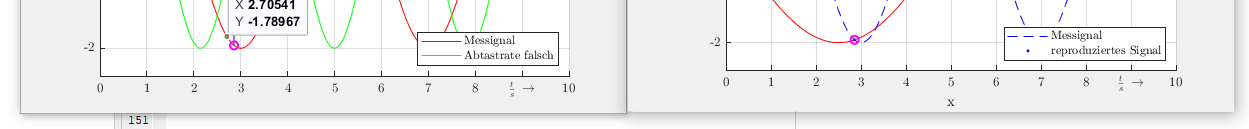 Hier zu sehen: links der korrekt erzeugte Plot Nr. 1, rechts daneben der Plot Nr. 2 mit komischem xlabel "x". Beide Figuren sind 100% identisch generiert...!?!
