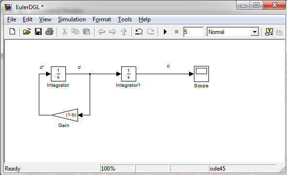 Lineare DGL 2. Ord (Eulergl) als Blockbild in Simulink |