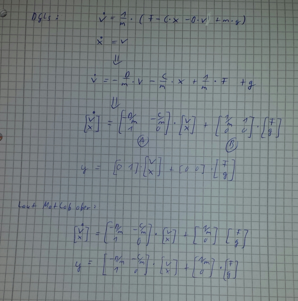 Leider passt die Lösung die MatLab für die Matrizen AA BB CC DD liefert nicht zu meiner Handrechnung.
