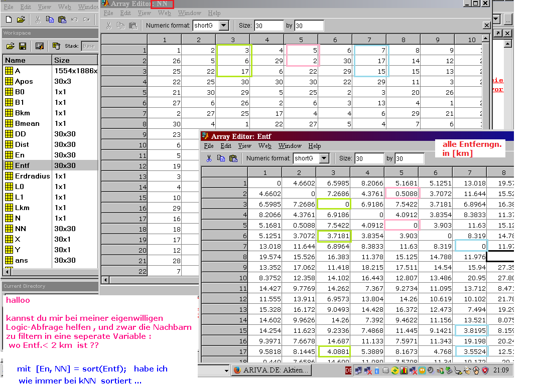 Ich habe im Screenshot auch ein Auszug der sortierten Entfernung-Matrix ... schön mit allen Indizes ...