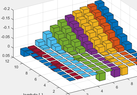 Habe für einen Isosurface 3 mal eine 11x11x11 Matrix erstellt und es damit geplottet. Da ich aber aus dem Plot keine vernünftigen Schlüsse ziehen kann, hab ich beschlossen ein 2D Bar Chart zu erstellen. Dafür habe ich die 3D Matrix in eine 2D Matrix umgewandelt.