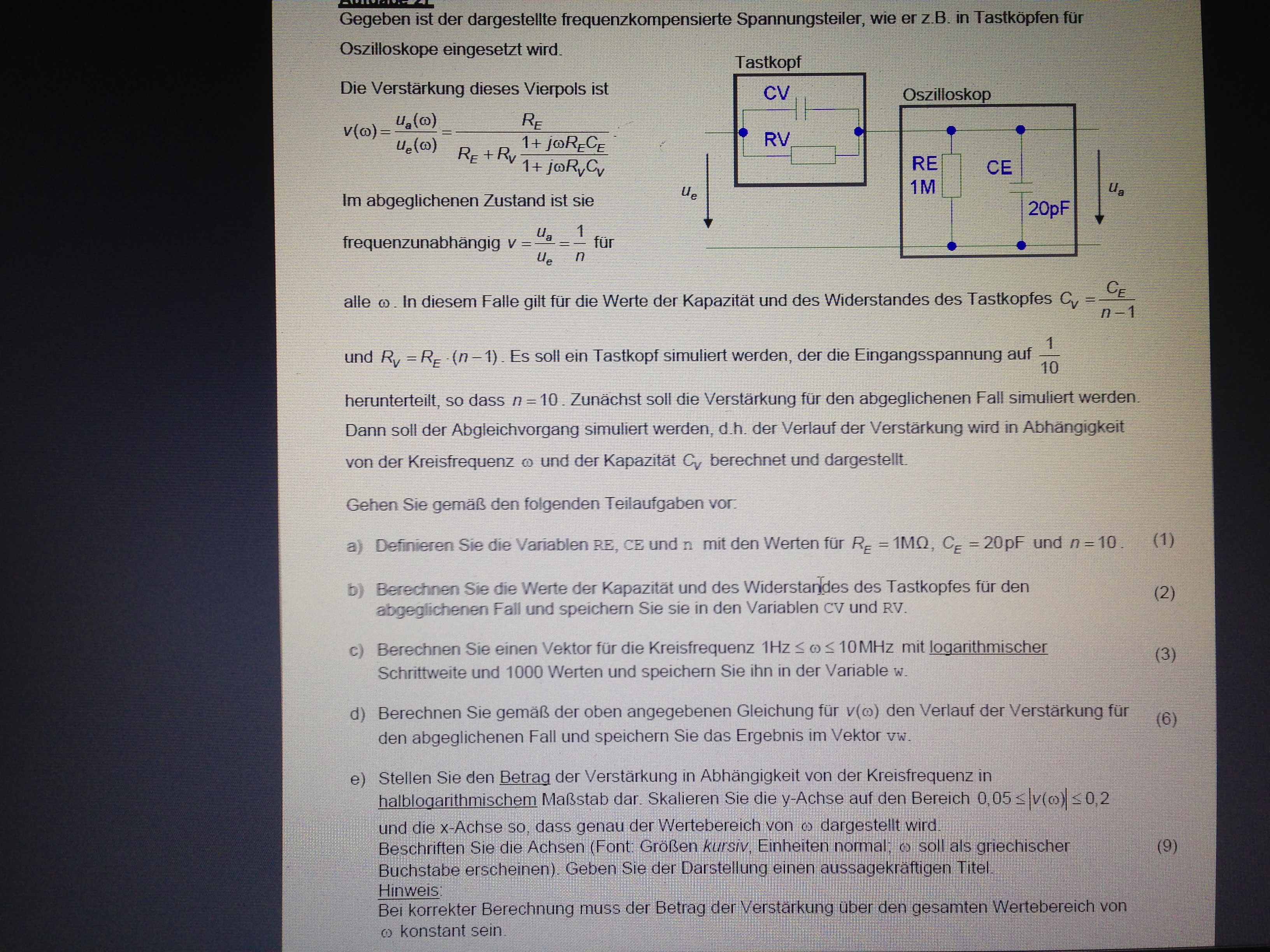 Hallo leute ich verstehe bei dieser matlab aufgabe grad nicht wie die hier auf den logspace befehl bei der c) kommen: