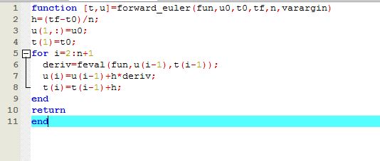 A matlab code for integration of systems of ODE using Forward-Euler is