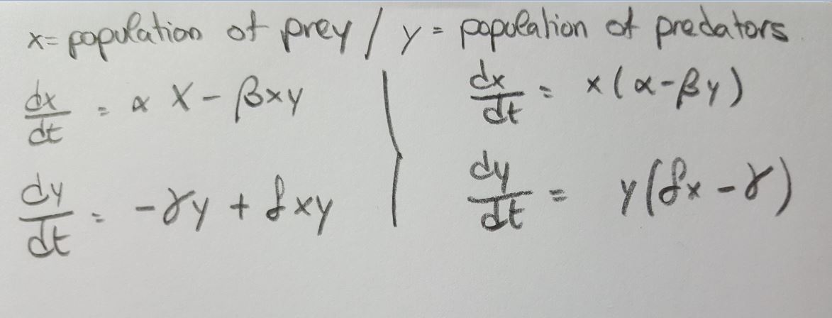 uct of the numbers of prey and predators (with constant 'beta').