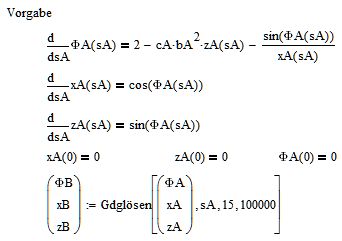 anliegend der Versuch die Form eines hängenden Tropfens zu berechnen.