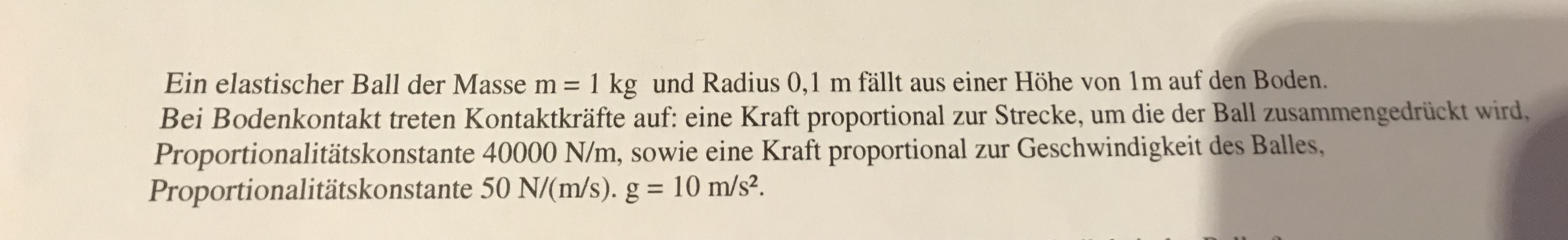 Dabei handelt es sich um den Aufprall eines Balles auf dem Boden. Die DGL habe ich durch Auswertung der Kräfte ermittelt. Folgende Parameter sind gegeben: