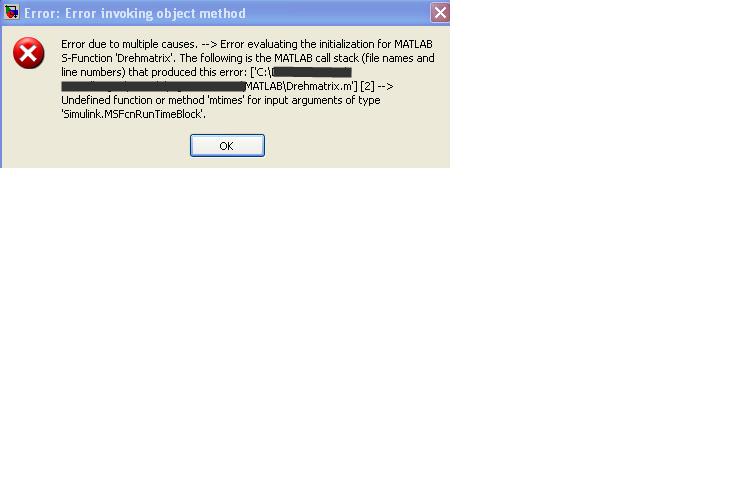 Die einzige Möglichkeit, die ich bisher gefunden habe, ist eine level 2 - Mathlab s-Function aber das funktioniert nicht, da ich folgende Fehlermeldung bekomme: (angehängt als Bild)