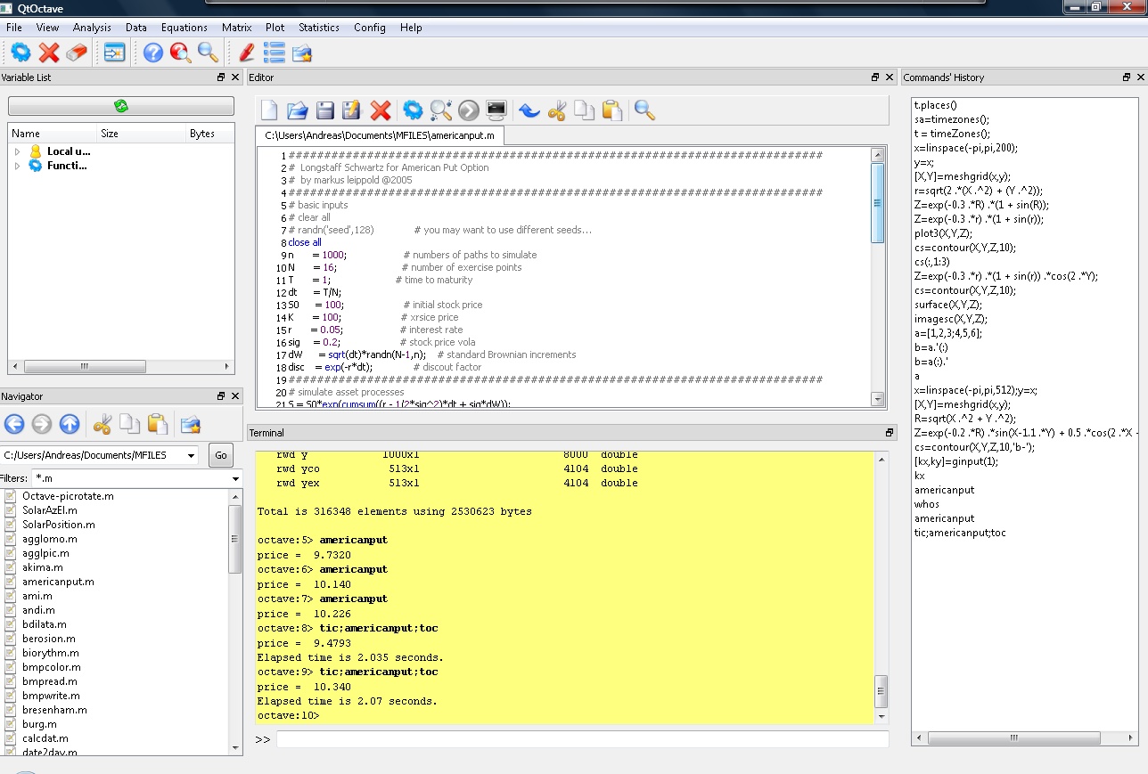 Die Datei habe ich in einem Ocatve-bekannten Verzeichnis als Datei "americanput.m" gespeichert.